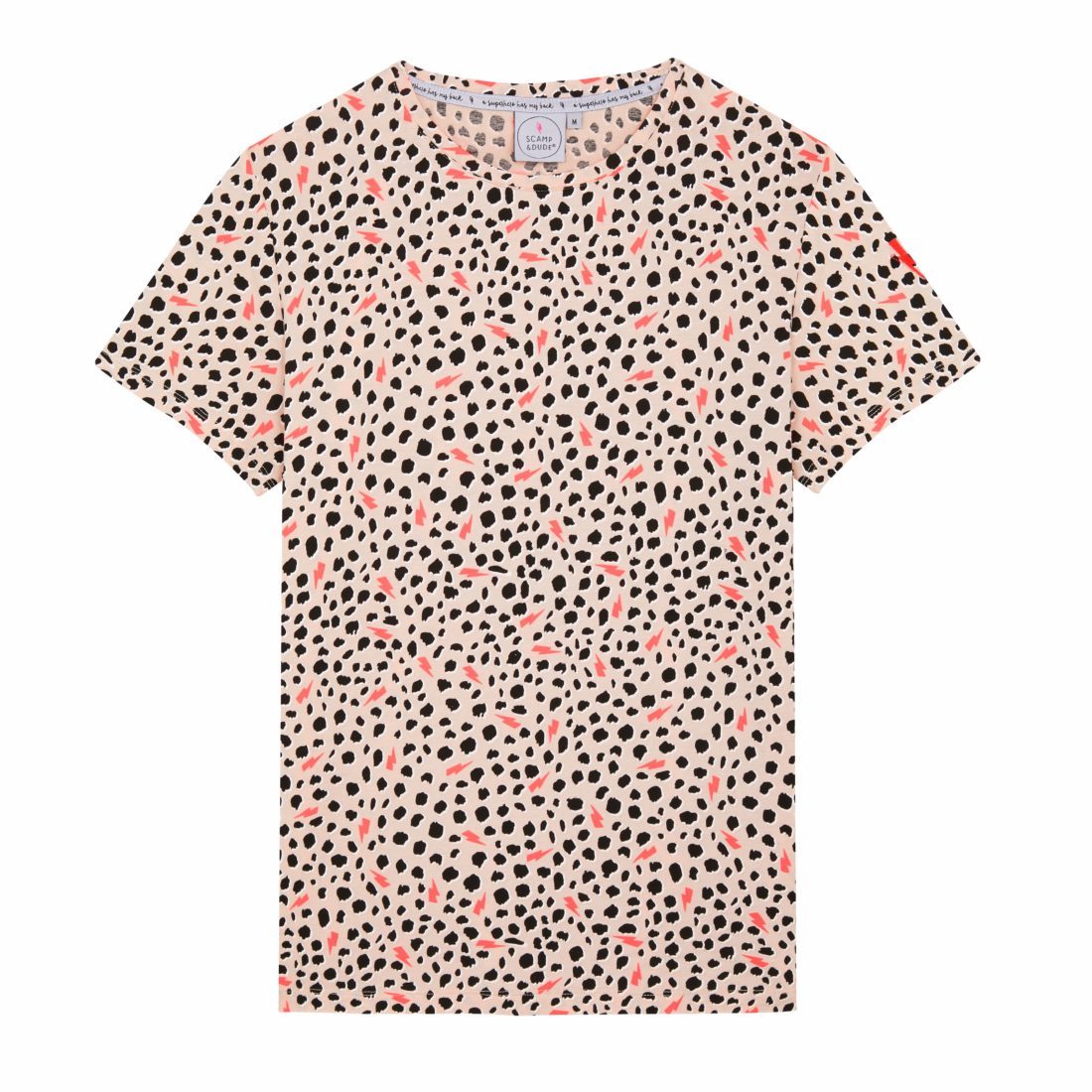 Blush super soft T-Shirt with black cheetah print and neon pink lightning bolts