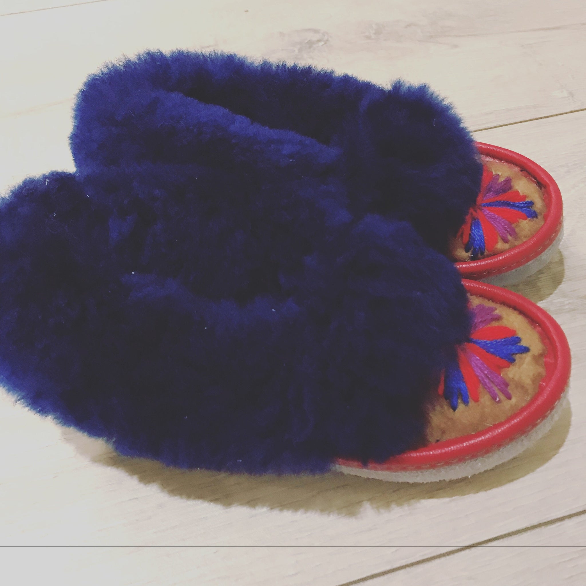 Every pair is unique. There are minor variations in the colour, embroidery, wool trim, and leather upper.