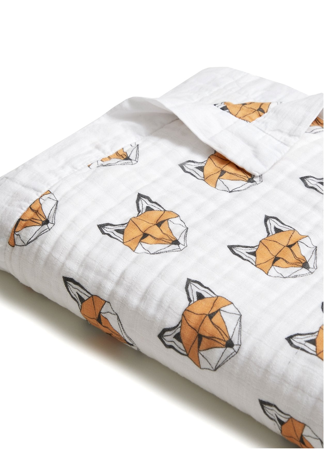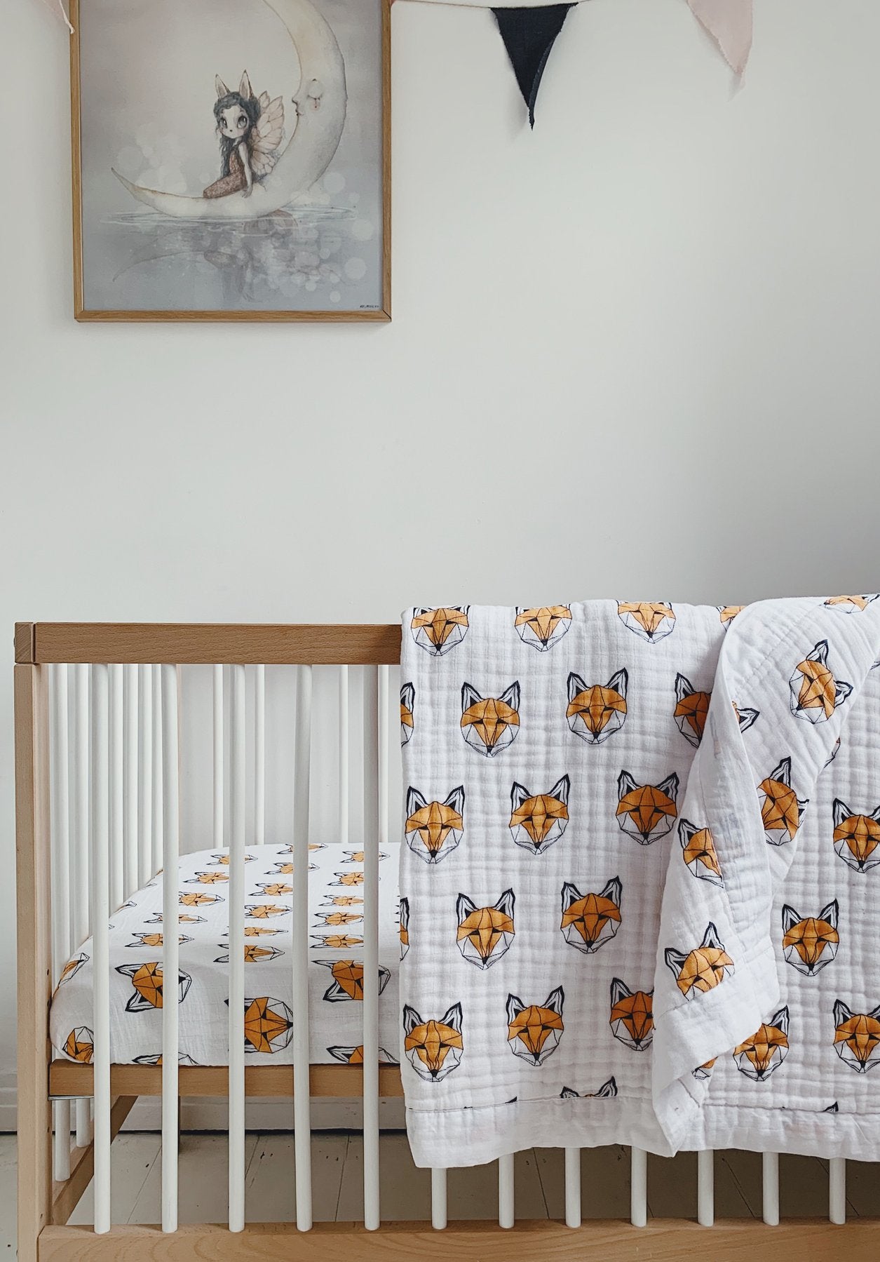 The most beautiful quilt printed with the iconic Just Call Me Fox print from Tobias & the Bear and crafted from super soft organic muslin cotton joins the TATB family. Made using a luxurious four layers of fabric and with such generous sizing it's large enough to lie on a single bed, this is a piece that will take you through baby to toddler to bigger kid years. Snugly, breathable, cute and cool, it's one you'll want to pass down through the generations.