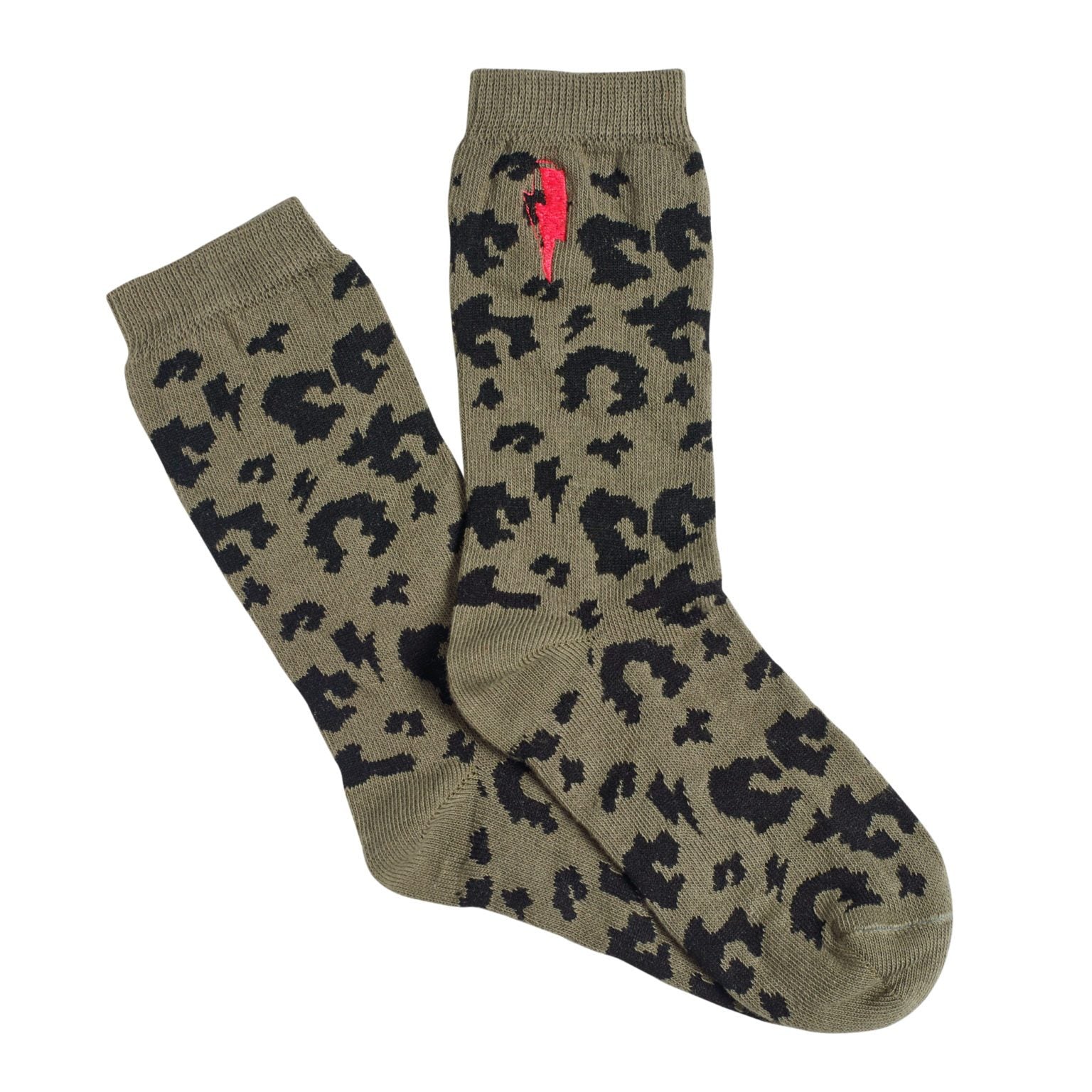 Pull on these supercharged socks for a boost of superpowers. These super soft cotton socks in the Scamp & Dude signature leopard and lightning bolt print are designed to be worn by the whole family. Available in four colourways pink/red, coral/grey, khaki/black and black/red.